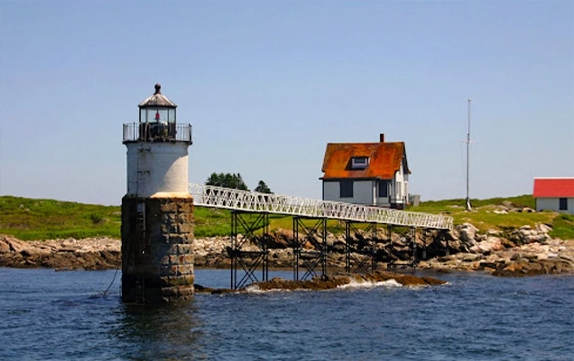 The Ram Island Light marks the entrance to Boothbay Harbor, situated on the West Bank of the Damariscotta River. It can be viewed from a distance by land, but the best viewing is available by one of the numerous boat tours offered in Boothbay Harbor.